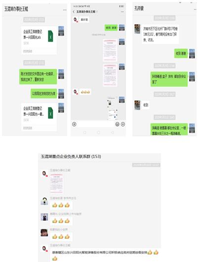 (上圖為2月5日,就公司復(fù)工申請(qǐng)事宜,槐蔭區(qū)工信局惠健副局長(zhǎng)和槐蔭區(qū)玉清湖街道辦事處李偉偉副主任等領(lǐng)導(dǎo)蒞臨公司進(jìn)行現(xiàn)場(chǎng)考察驗(yàn)收)